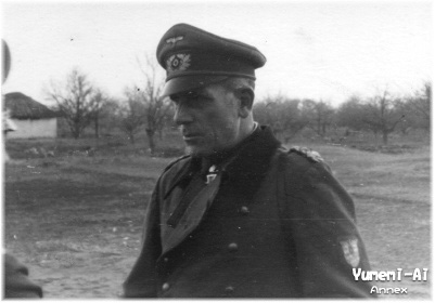 彼の騎士鉄十字章受章は1943年11月2日なので、もし人物が確定すると撮影日もおのずと確定となるわけですが、この時期の南方軍集団戦区の風景としてはあまり冬っぽくないような・・ しかし実は43年冬はそれまでと違いロシアの冬将軍が来なかった年なので、背景に雪などがなくとも不自然ではないのかもしれません。